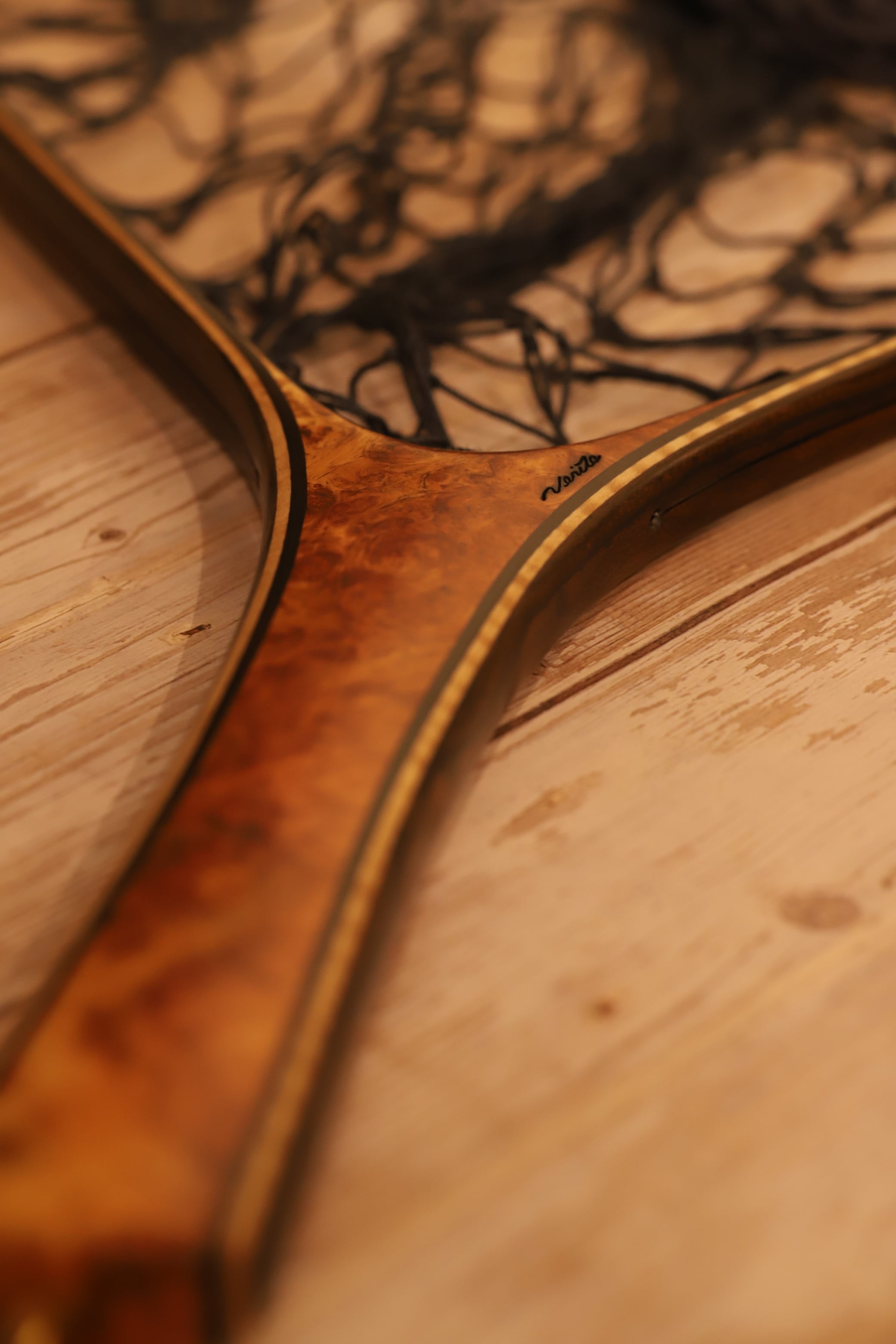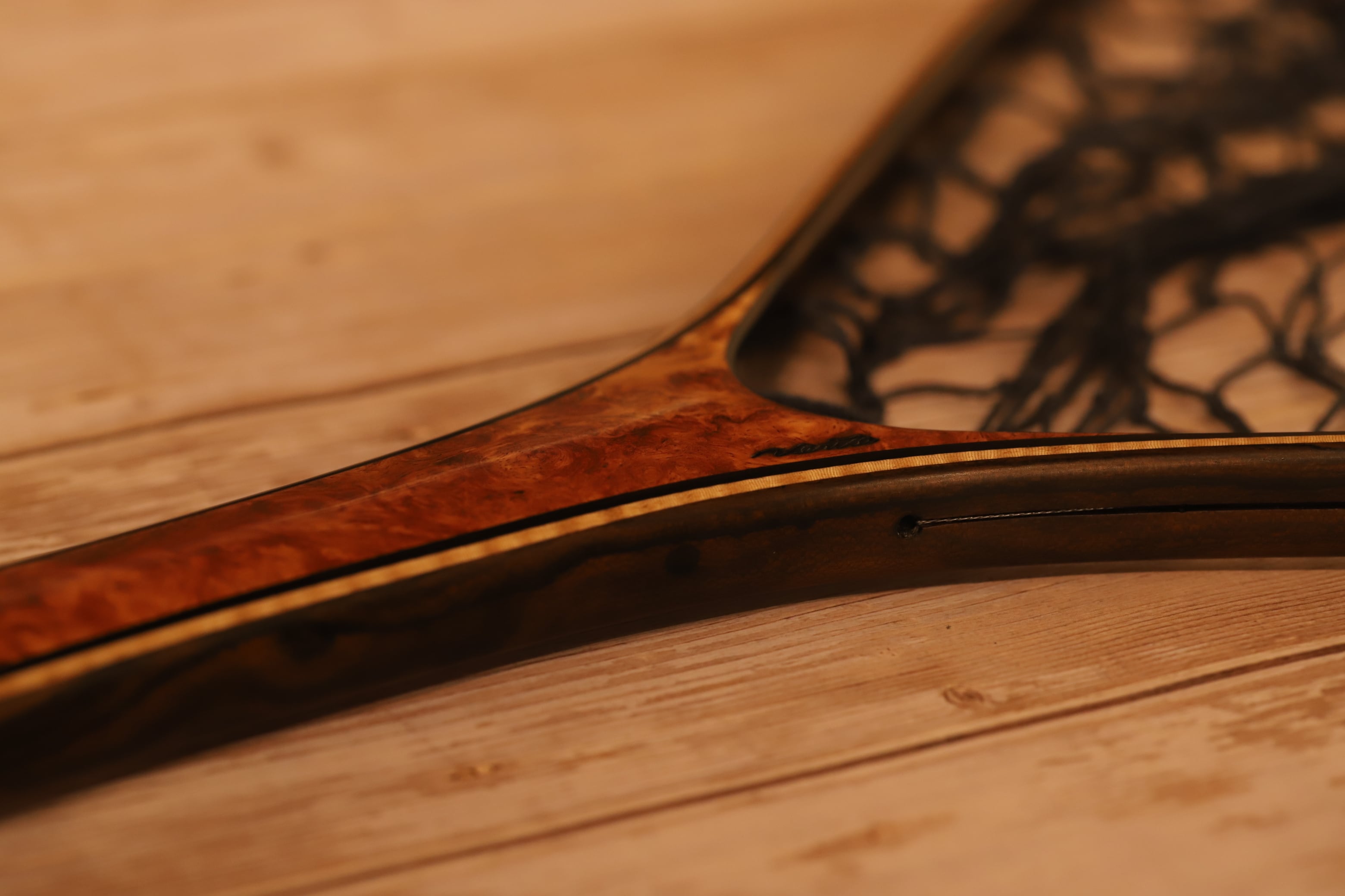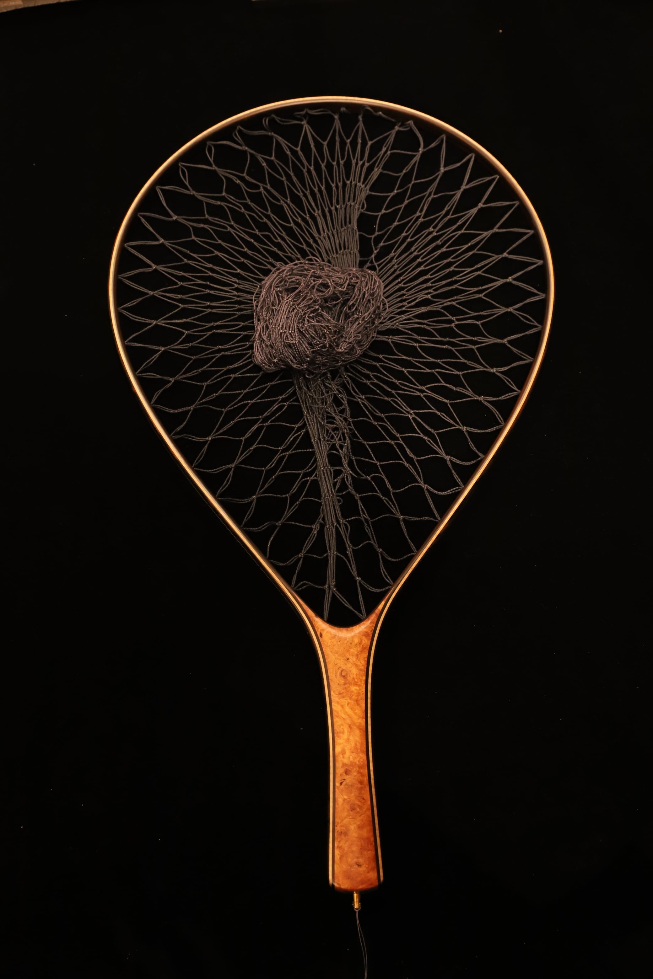 アトリエベリテS540です。サクラマスフィッシングのスタンダードサイズです。本流・レイクのレインボートラウト・ブラウントラウトの最適サイズです。 美しい花梨瘤紅白です。最初のサクラマスネットとして間違いのない1本です。 グレーのツートンカラーのネットも映えます。 内径:54cm グリップ:花梨瘤紅白 フレーム:シャム柿・トチ・黒檀・シャム柿(外側~内側) クレモナネットカラー:ダークブルー・ブルーツートン